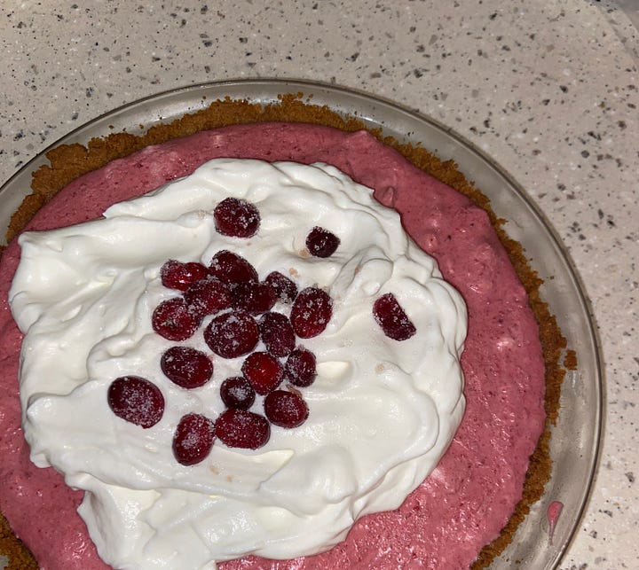 Claire Saffitz’s Cranberry-Pomegranate Mousse Pie. I’ve done the baking equivalent of hopping in trains planes and automobiles over snowy mountains and rough seas to get what I need for this Christmas Day pie every year. And no, you can’t stockpile fresh cranberries when the grocery stores start putting them out because they do in fact go bad very fast! That probably didn’t make any sense to you dear reader but just know baking this pie is always a whole production and headache inducing. I love it so much.